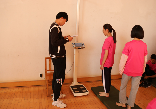 本次测试分为网上问卷调查和现场测试两个部分。在现场测试之前,我院经由教务办和各院多次联系、沟通,所有被抽测同学全部完成了网上问卷。现场测试分为身体形态和身体素质两个部分。身体形态包括身高体重、肺活量等,身体素质包括