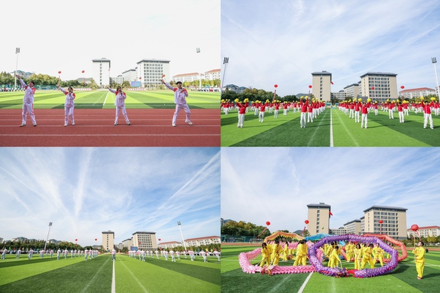 开幕式表演环节精彩纷呈,瞬间点燃了全场热情。快闪表演《迎风起跑》以动感节奏活力开场;教职工带来的健身操《我想离开浪浪山》动作铿锵,展现了讲台之外的别样风采;体育学院学子奉献的啦啦操与舞龙表演《闪耀晓庄》将气氛推向高潮——六条彩龙翻腾跳跃,变换出令人眼花缭乱的阵型,与活力四射的啦啦操相映生辉,为全校师生呈上震撼人心的表演。