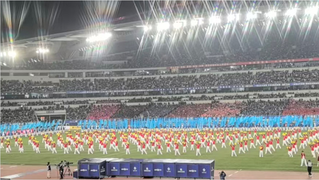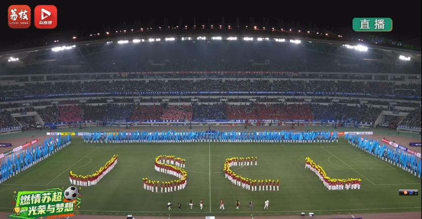 表演当晚,随着动感的音乐响起,200余名学子身着统一服装,手持花球,奔涌入场。他们步伐整齐划一,动作刚劲有力,笑容灿烂自信。队形时而如花朵绽放,时而如浪潮翻涌,充满了艺术的感染力和视觉的冲击力,并在队形变换中精准拼出“JSCL”(江苏省城市足球联赛英文缩写)字样,将现场氛围推向高潮。整个表演行云流水,气势恢宏,与苏超赛场拼搏进取的体育精神相得益彰,赢得了现场观众阵阵热烈的掌声与喝彩。