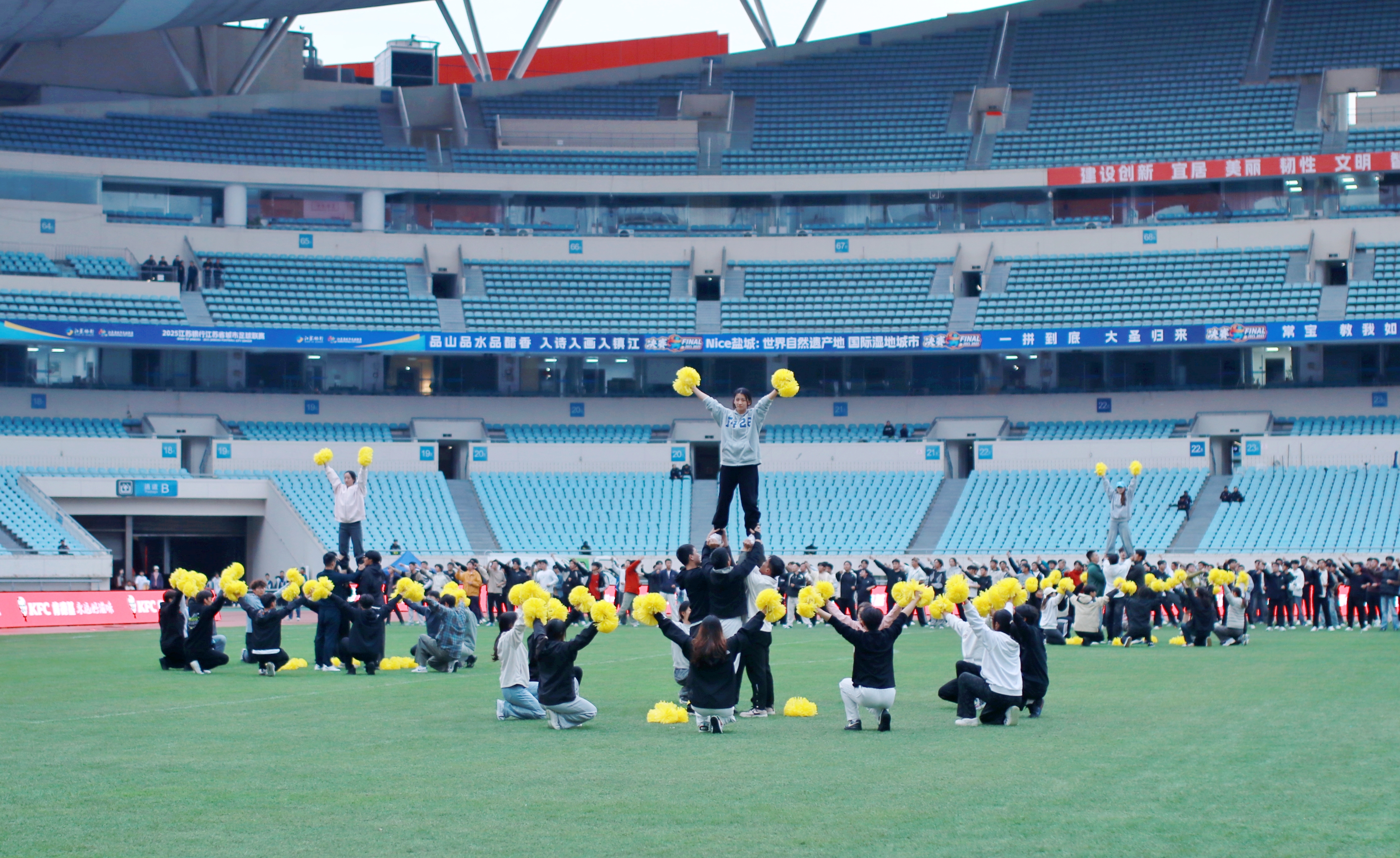 11月1日,在备受瞩目的江苏省大学生足球联赛(简称“苏超”)总决赛的赛场上,一场激情四射、活力满满的赛前表演秀成为全场焦点。体育学院的200余名学子,以一场近乎完美的啦啦操表演,点燃了现场气氛,为紧张激烈的决赛增添了无限艺术魅力与青春活力。这已是学院学子第三次受邀登上苏超比赛表演环节的舞台,成为赛事一道亮丽的风景线。