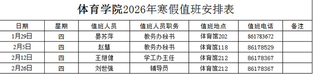 体育学院2026年寒假值班安排