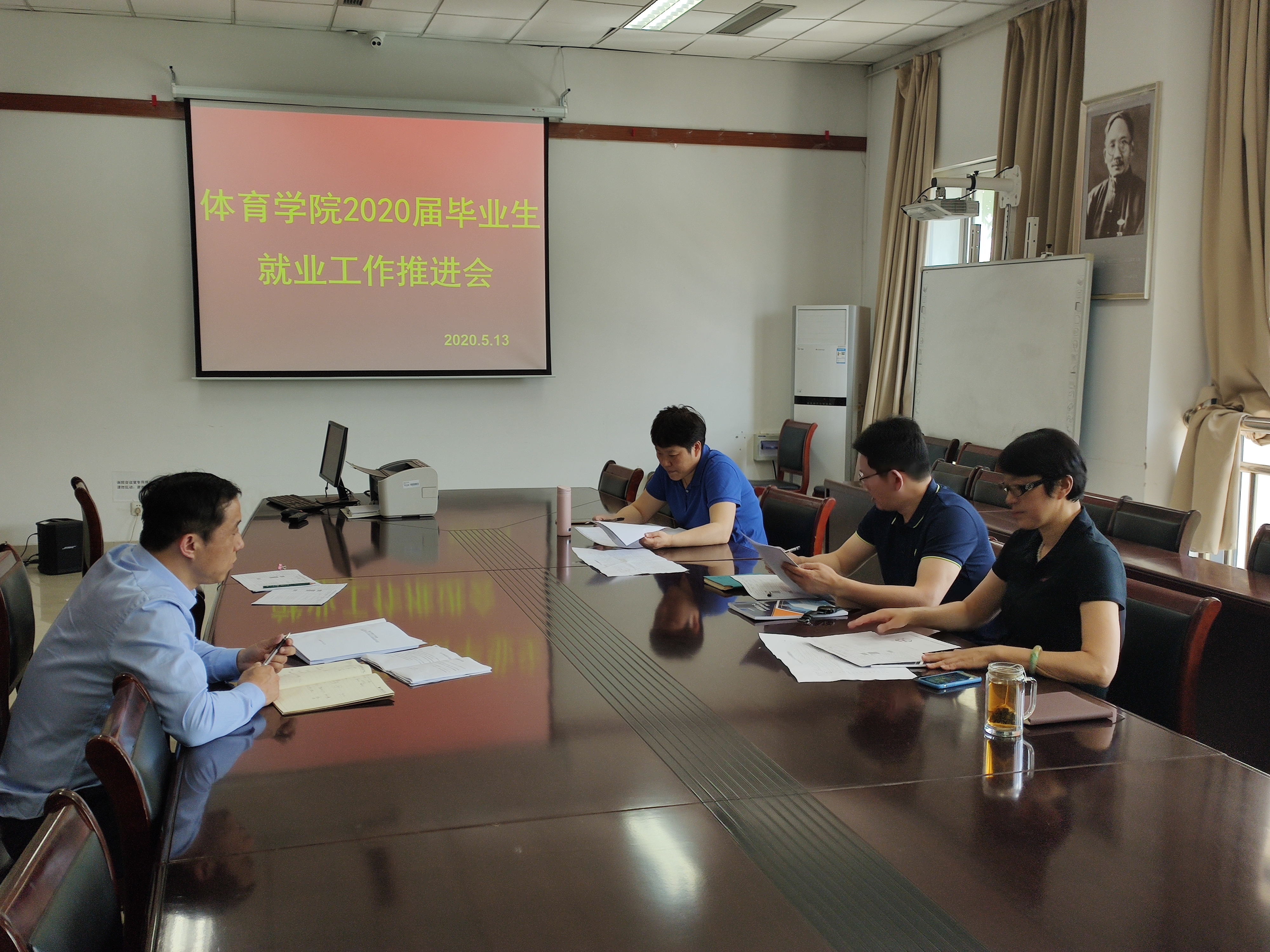 5月13日体育学院召开了2020届毕业生就业工作推进会,体育学院党总支书记院长,专业负责人,毕业班班主任和辅导员参加了会议。会上党总支胡辰书记介绍了2019届毕业生就业整体情况,同时分析了2020届毕业生的整体情况和今年的整体就业形势。辅导员周洪生根据我院2020届毕业生就业情况统计表,介绍了我校招生就业处本年度的就业工作要求和安排,统计了我院目前已就业,考编考研以及待就业的详细情况。毕业班班主任纷纷表示全力配合学院做好今年的就业工作。最后江宇院长希望参会的全体人员齐心协力做好2020届毕业生就业指导工作,努力为学生提供就业信息资源和渠道,完成学校的就业工作计划。