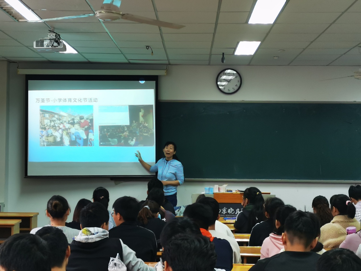 2020年10月27日,体育学院张红老师在行知组团A楼403教室就赴美访学的经历、收获与体会给体育学院18体育教育专业学生做了专题讲座。