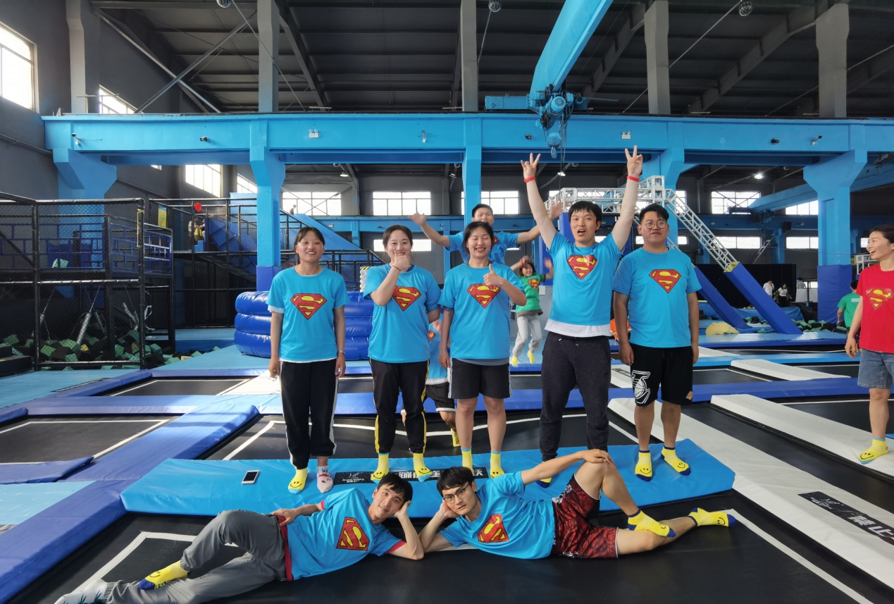 蹦床馆+撕名牌有搞头吗?看着场馆内充满的欢声笑语,答案是显而易见的了!赵雯青老师带领绿队,刘鹏老师带领蓝队、陈程老师带领橙队、陈老师爱人带领红队,在蹦床馆展开厮杀。上场三分钟,班主任陈程老师的名牌即被其他队队员丝毫不留情面的撕掉,只能在角落组织玩其他小游戏。蓝队在刘鹏老师的带领下,最终取得了本次撕名牌争霸赛的优胜者!