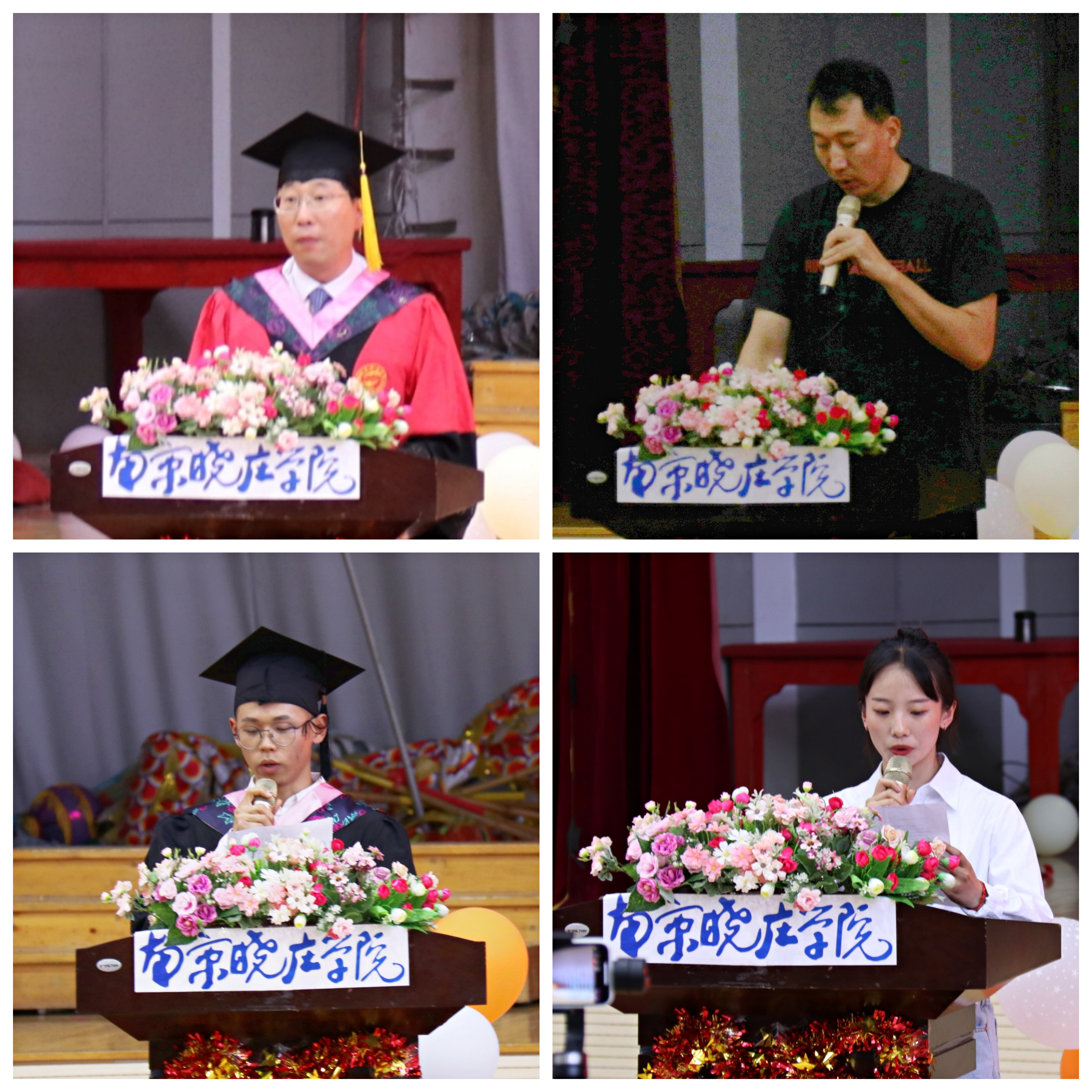 张伟院长、丰磊老师、毕业生代表韩朋朋、学生代表张雯悦分别发言