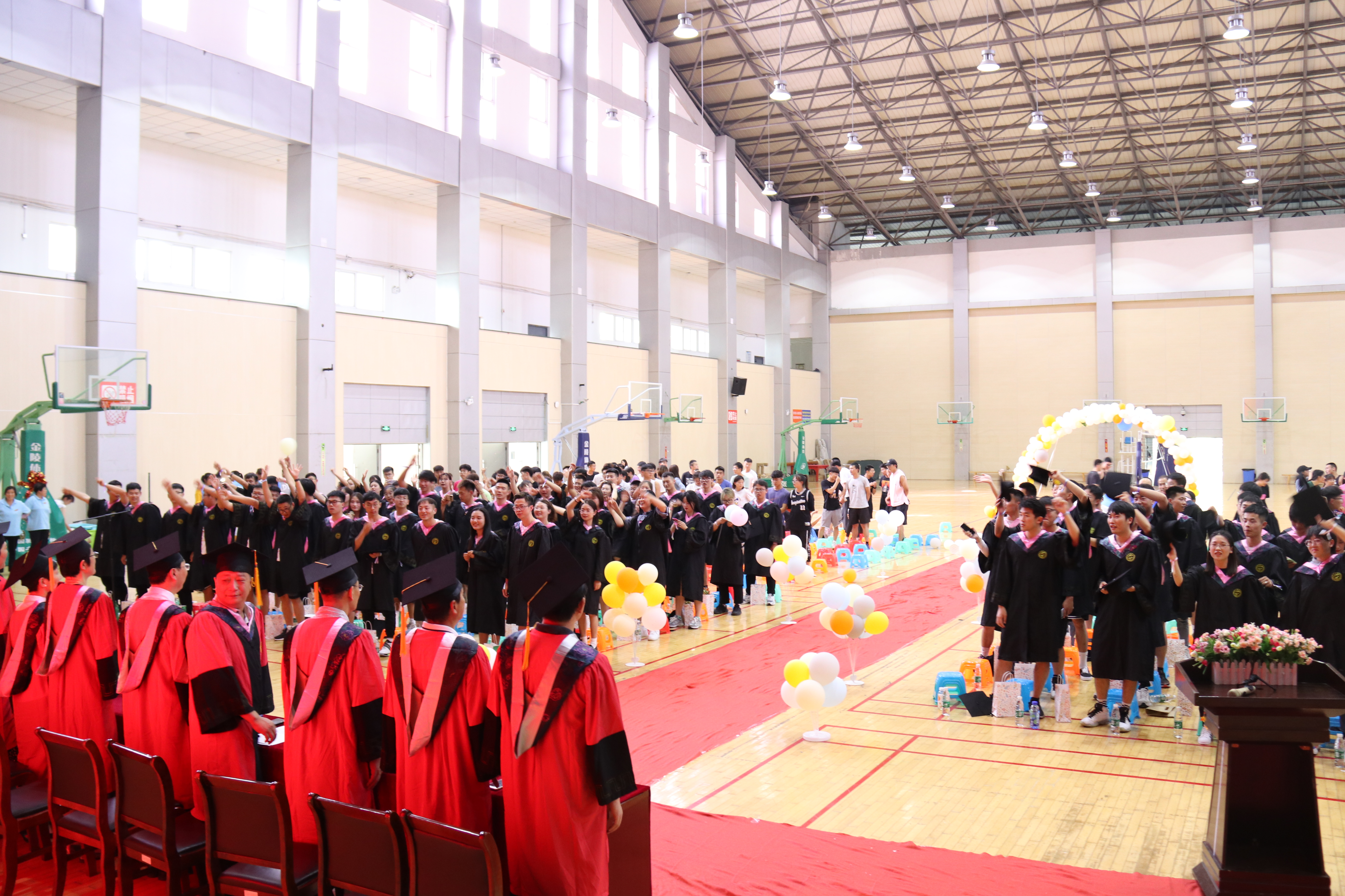 下午2:30分,全体毕业生在师生的欢呼下有序进场,他们穿过气球拱门、走在红色地毯上,迎来了大学的高光时刻。毕业典礼在嘹亮的国歌中开始。
