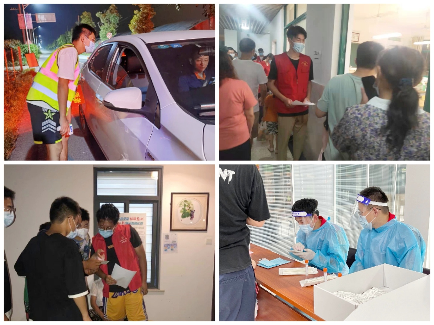 19体教2班团员苏珊珊先后在社区担任卡点志愿者和核酸检测引导员,用行动守护好小区的第一道防线;18体教2班团员陈昊全身防护每六个小时换班一次,帮助检测人员贴试管二维码、撕棉签、身份信息录入,以加快核酸检测速度;19级体教3班团员张俞在社区核对人员信息、维护核酸检测队伍秩序;18级体教2班发展对象刘扬参加湖熟街道新农社区核酸检测的志愿者,核对社区居民身份信息,引导社区居民核酸检测;20体教2班团员吴周乔参与六合区龙池街道志愿服务,负责检查来往车辆的苏康码、测量体温等工作。
