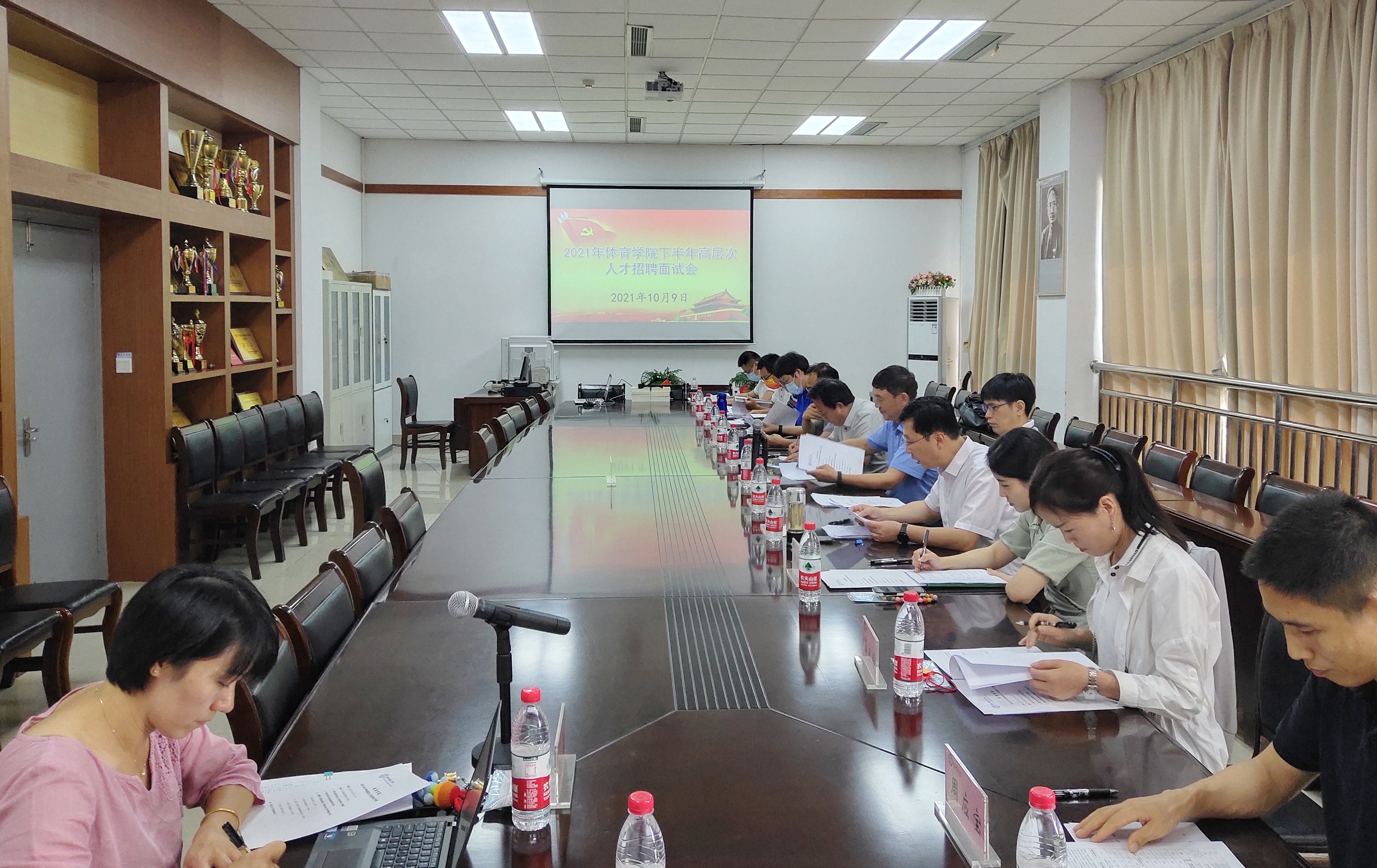 体育学院于2021年10月9日14:00组织了高层次人才引进招聘会议,学校人事处派专人进行了会议的指导和监督工作。