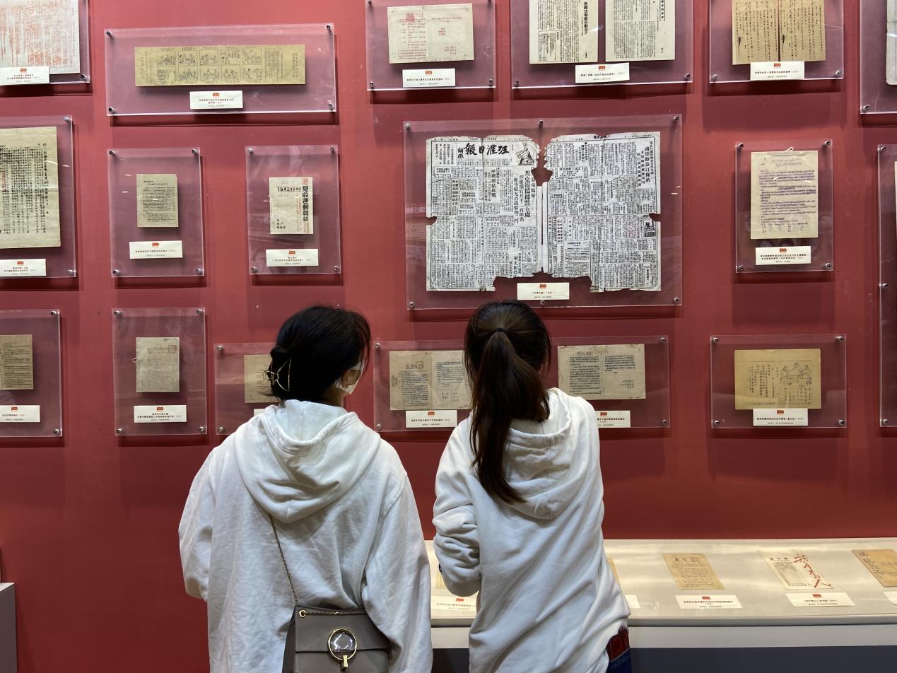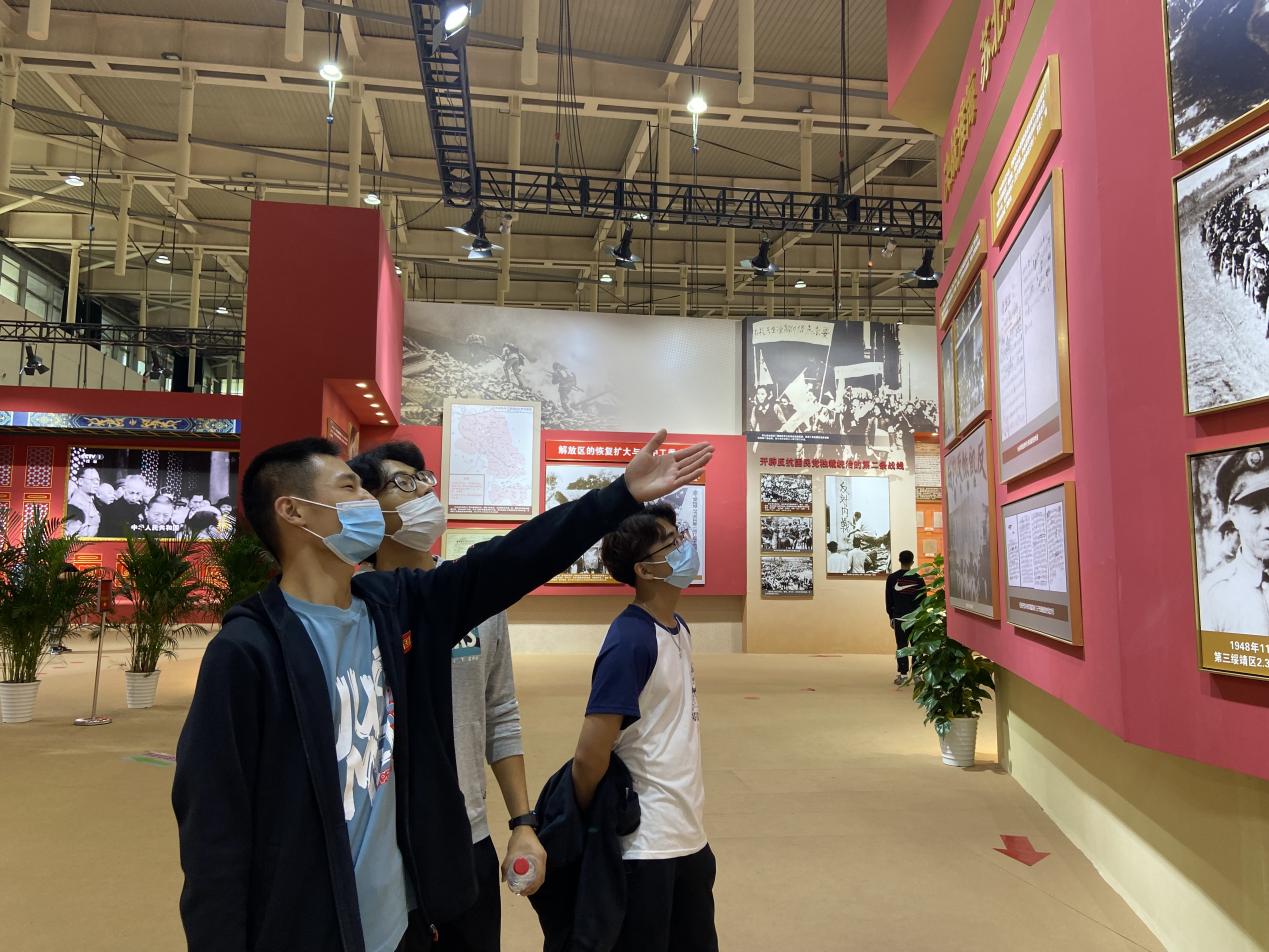 观展的学生、老师不时驻足观看、拍照留念、交流参观心得体会,从回望党的百年奋斗历程中,接受深刻的党史学习教育,感受党一路走来的光辉历史。