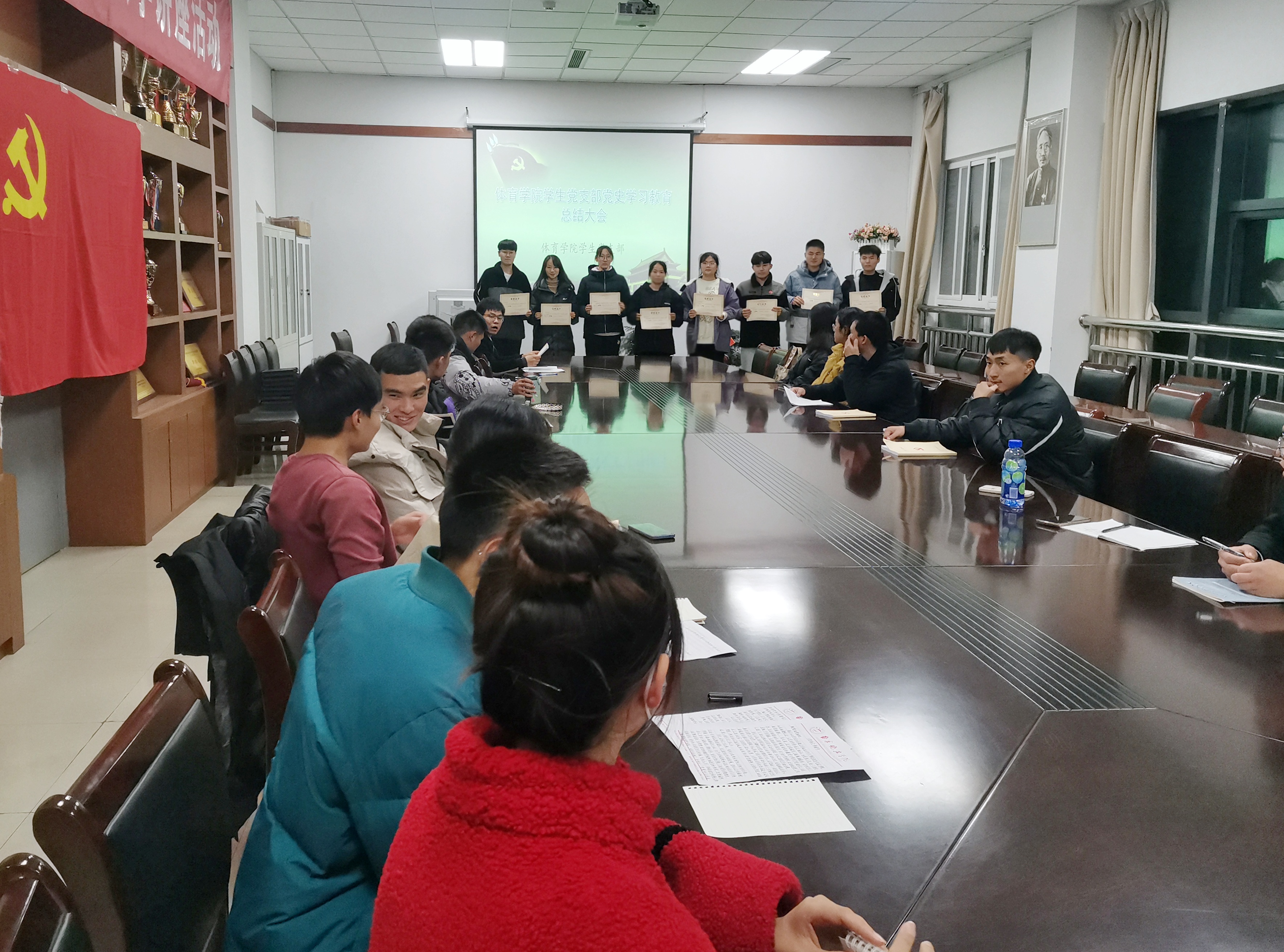 在学生党支部党史学习教育总结大会上,还对“跟着影视学党史”主题征文活动获奖的同学颁发了荣誉证书。学生党支部将会继续教育引导全体学生党员学史明理、学史增信、学史崇德、学史力行,立足学生实际、守正教育创新,进一步发挥学生党员的榜样作用,促进我院学生工作出彩出新!