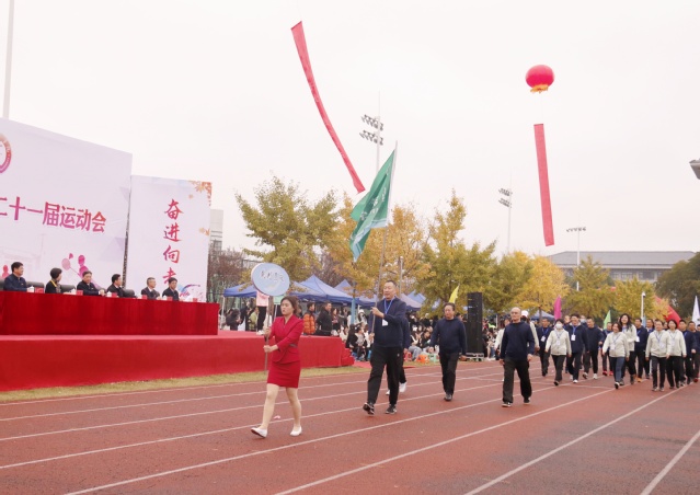 11月17-18日,我校第二十一届运动会在南操场隆重举行,全体校领导出席运动会开幕式。国旗队、校旗队、彩旗队、鲜花队、裁判员队、教工方队和二级学院的运动员方队踏着激昂的音乐依次走过主席台。张志华校长在开幕式上发表讲话,我院朱静老师代表全体裁判宣誓,商学院学生王烨同学代表全体参赛学生宣誓,最后张策华书记宣布运动会开幕。