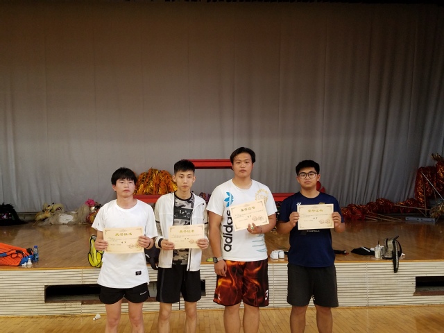 男双:冠军:徐忠兴,张伟东 亚军:乔重阳,王郭唐 季军:陈乐,郁安康