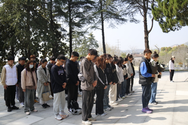为铭记革命历史,传承红色基因,加强大学生爱国主义教育,清明节到来之际,我院学生党员、入党积极分子等40余人在学院辅导员老师的带领下,前往云台山抗日烈士陵园开展“缅怀革命先烈 传承红色基因”主题党日活动。