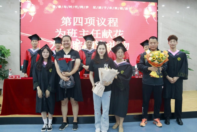 毕业生代表向班主任献花