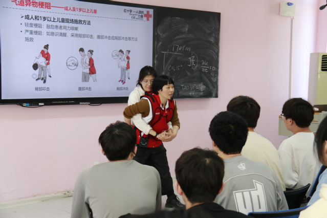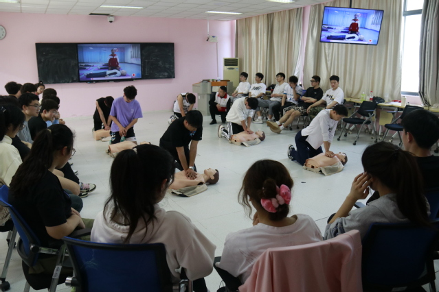 江宁区红十字会的老师以理论讲授、现场演练、实践操作等方式进行授课,通过多媒体、音视频以及现场模拟教学等形式,系统地讲授了红十字运动相关知识、救护新概念、“黄金四分钟”的重要性;重点实操了心肺复苏及AED使用、气道异物梗阻排除技能、止血、包扎、骨折固定及烧烫伤等急救知识和施救技能,提高了学生的防灾避险意识和自救互救技能。