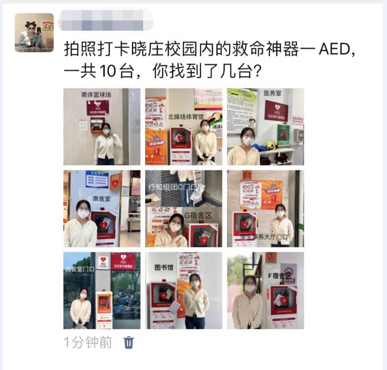 为进一步提高校园应急能力,让广大学生清楚的知晓每台校园AED存放的准确位置,在突发情况时快速找到最近的救命神器,助力平安校园建设,体育学院联合后勤处卫生管理科开展“寻找身边的救命神器——AED”活动。
