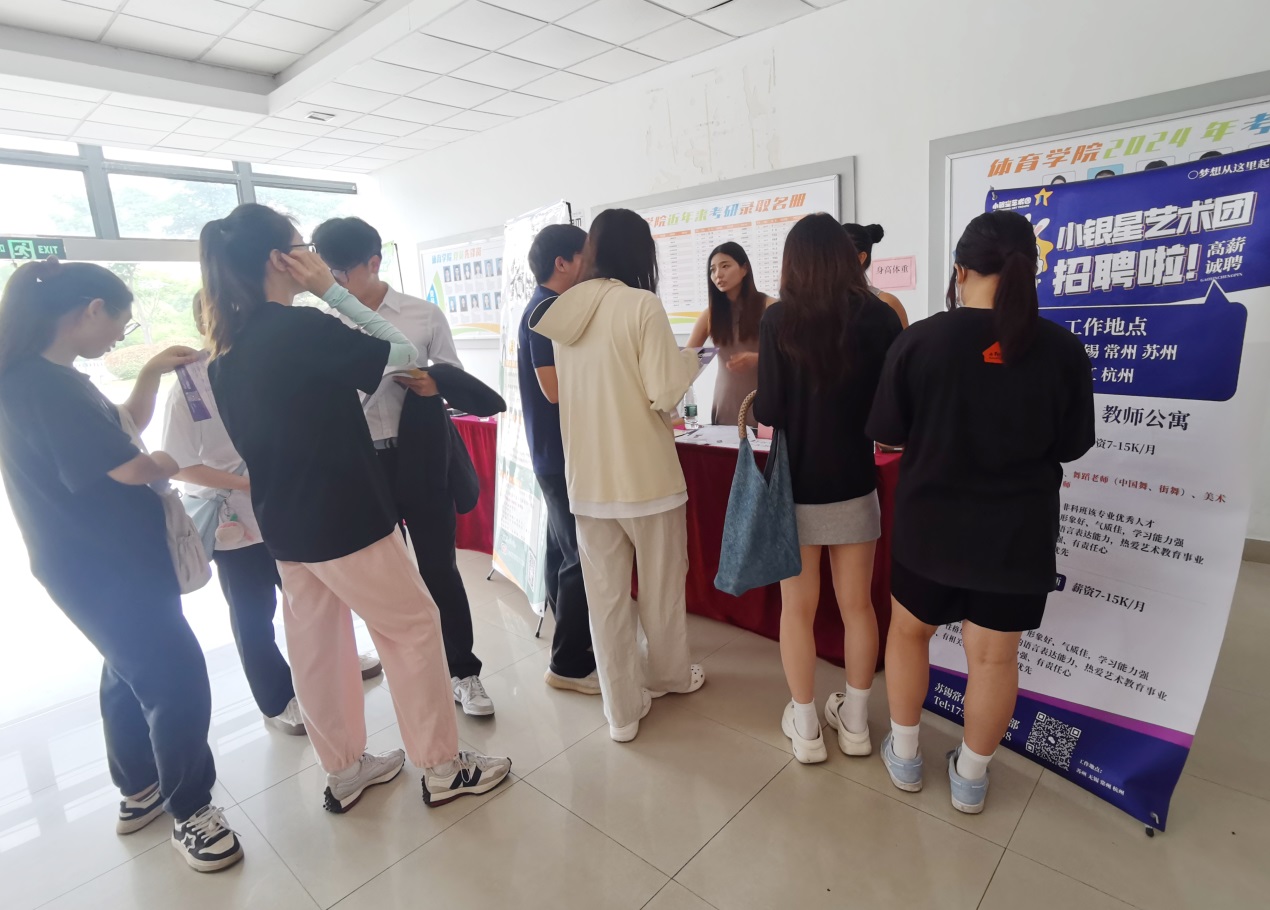 本次招聘会共有8家用人单位参与,提供30余个岗位信息。江苏省小银星艺术团在招聘会结束还开展了专场的宣讲会,10余名有求职意向的学生参加宣讲会,进一步了解企业情况和岗位信息。此外,南京特殊教育师范学院体育学院毕业班辅导员带领部分毕业生前来参加招聘会,并关于就业工作和学院相关老师进行交流。
