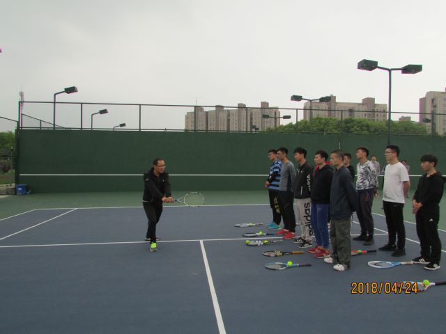 4月24日下午,我院公开课活动继续进行,温东良老师在南网球场开设了《网球》公开课,校督导左从现教授及全院老师参与听课。