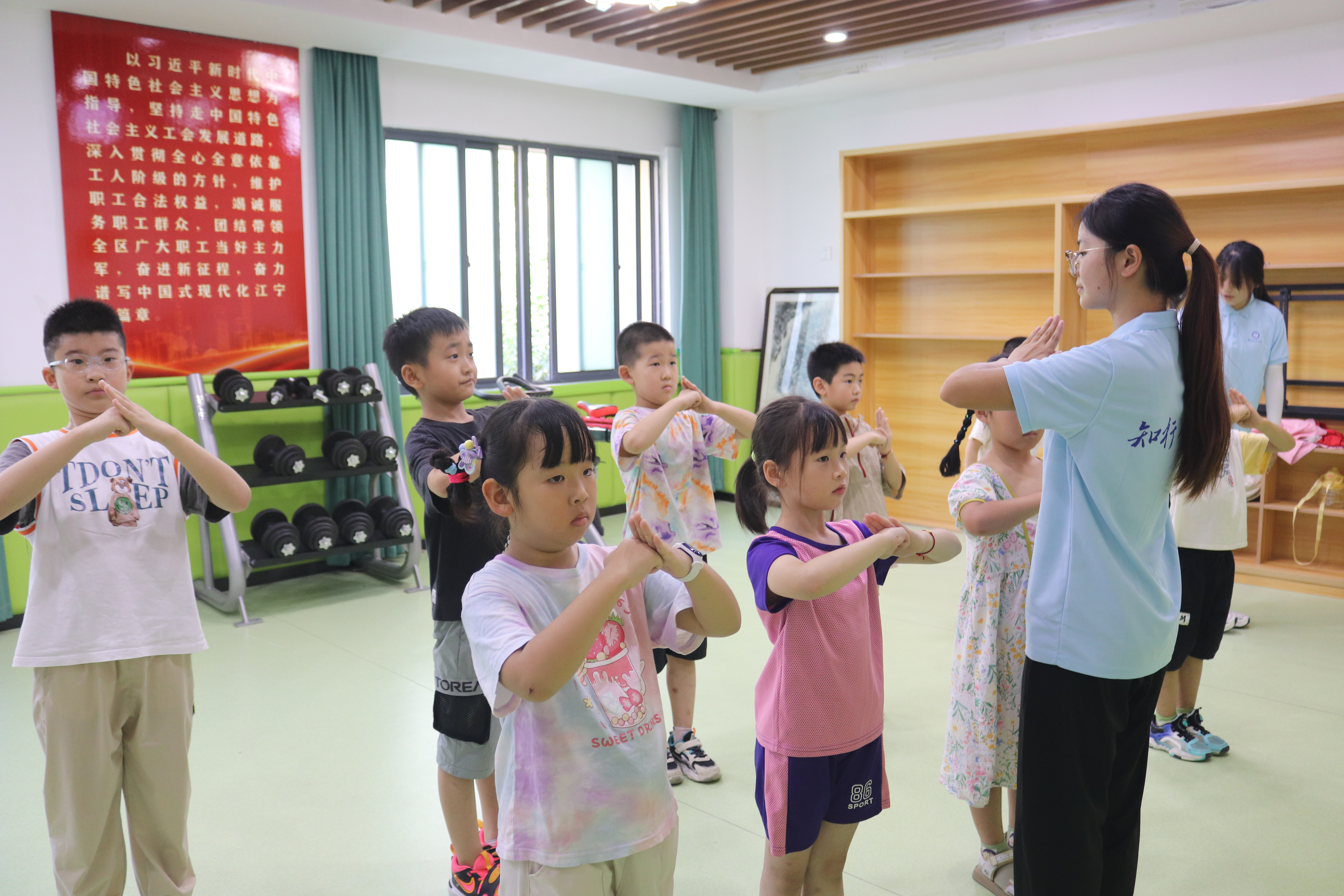 7月29日夏令营活动正式开始,志愿者为社区小朋友带来武术课程,让小朋友们领略传统武术之美,在志愿者展示一些武术的动作之后,小朋友们纷纷高呼好厉害,对武术展现了极大的兴趣,纷纷要成为“英雄少年”;在健美操课程中,志愿者们耐心解答了“什么是健美操”“健美操的分类”等等许多问题,并展示了大众二级健美操,让小朋友感受到了健美操的热情与活力,在之后健美操基本步伐的学习和跟随音乐完成动作时,小朋友们展现了良好的节奏感和韵律感;在排球课程中,志愿者为小朋友讲述中国女排的故事,感受女排精神,教授排球的基本手型、纠正手部姿势,让他们感受到排球运动的乐趣和团队合作的力量;在课堂上,志愿者们与小朋友们积极互动,并通过各式各样的游戏来调动课堂氛围,利用体育游戏来提高孩子们的反应力与协调性。