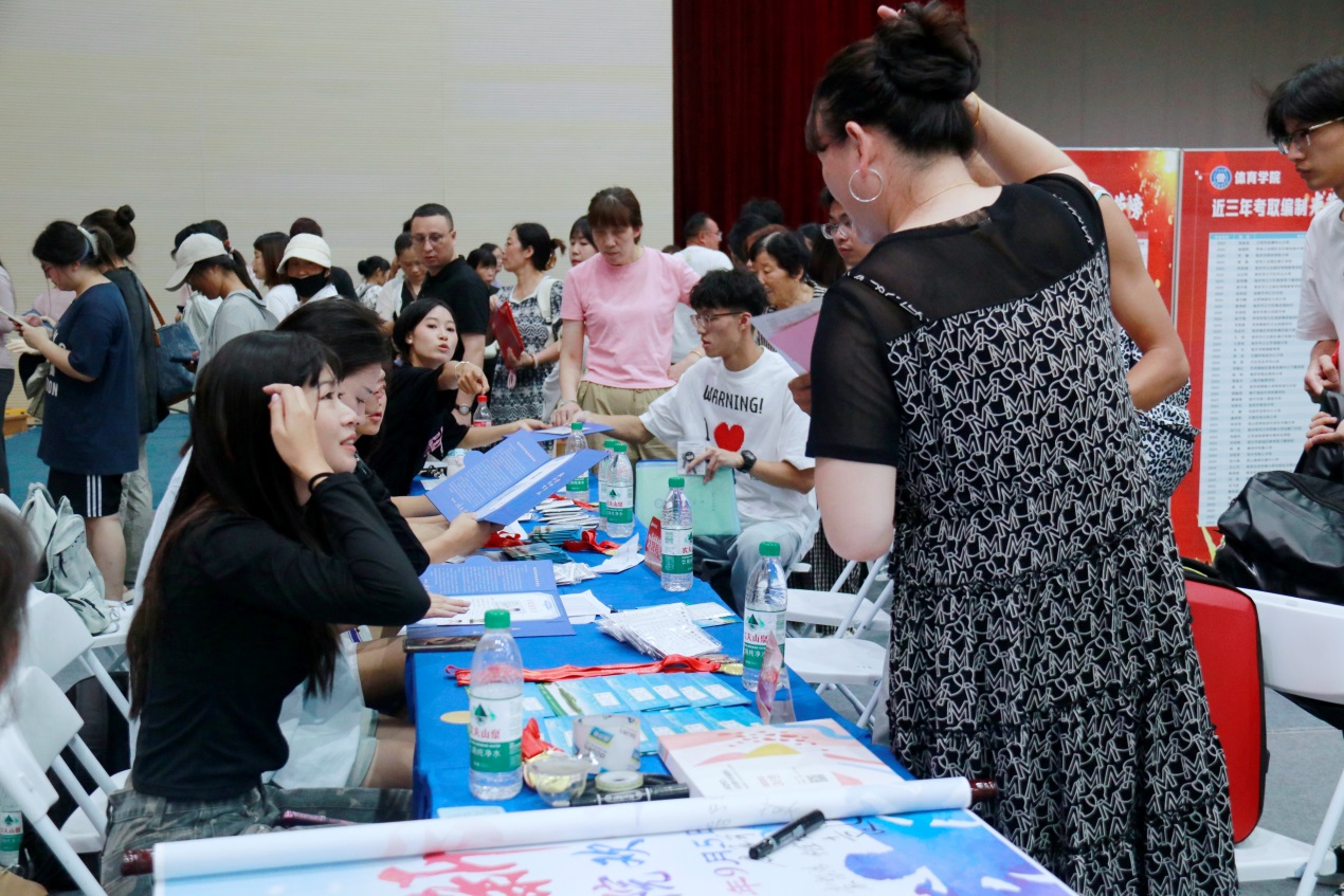 学院把职业生涯教育和就业指导搬到迎新现场,学生及家长在学院近三年高质量就业展板前驻足观看,在职业目标喷绘墙前纷纷打卡拍照。新生在办理完手续后,在签名卷轴上签名,并合影留念,记录大学入校的重要时刻。