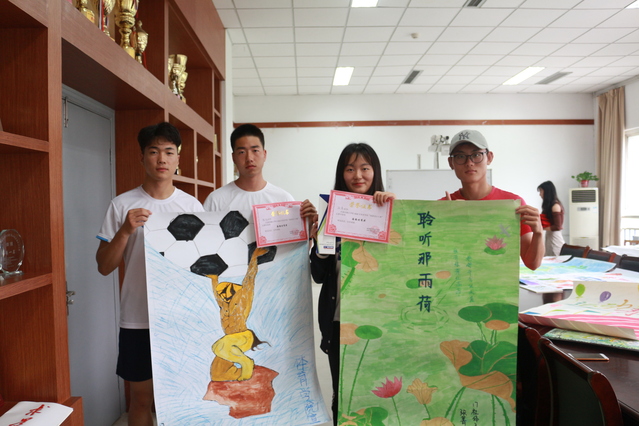 本次比赛准备时间充足,为了增加参赛人员的作品质量,学生会也为参赛人员提供创作的场地与材料。本次比赛分为线上和线下公开投票,线上投票占总成绩的百分之四十线下成绩占总成绩的百分之六十。线上投票结束后,由三位老师、学生会主席和两位学生代表组成线下投票组,进行公开投票。投票现场十分火热,精美的作品让人目不暇接,经过了长达十分钟的投票时间,最终由17体教二班的张国胜同学获得此次比赛第一名,17体教二班的刘庆千和周慧娟同学获得第二名,17社体三班的魏春晓同学获得第三名,17体教一班程凯获得第四名,17社体三班张菁获得第五名,17体教一班吴双获得第六名。